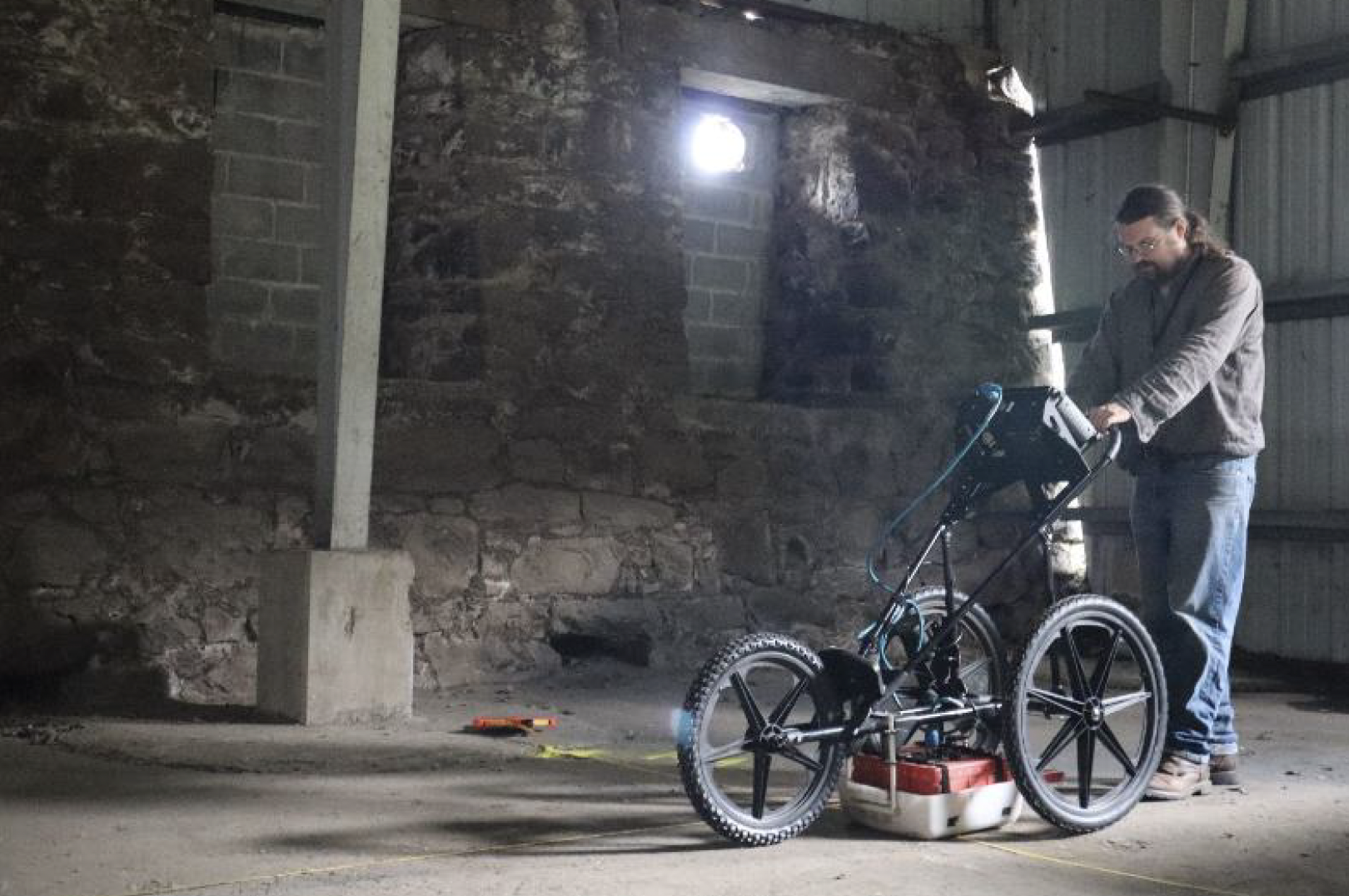 LiDAR Scan:Combining LiDAR scanning of 1880s mill foundations with ground-penetrating radar data and decade-old excavations to create a "view" potential features above and below surface.